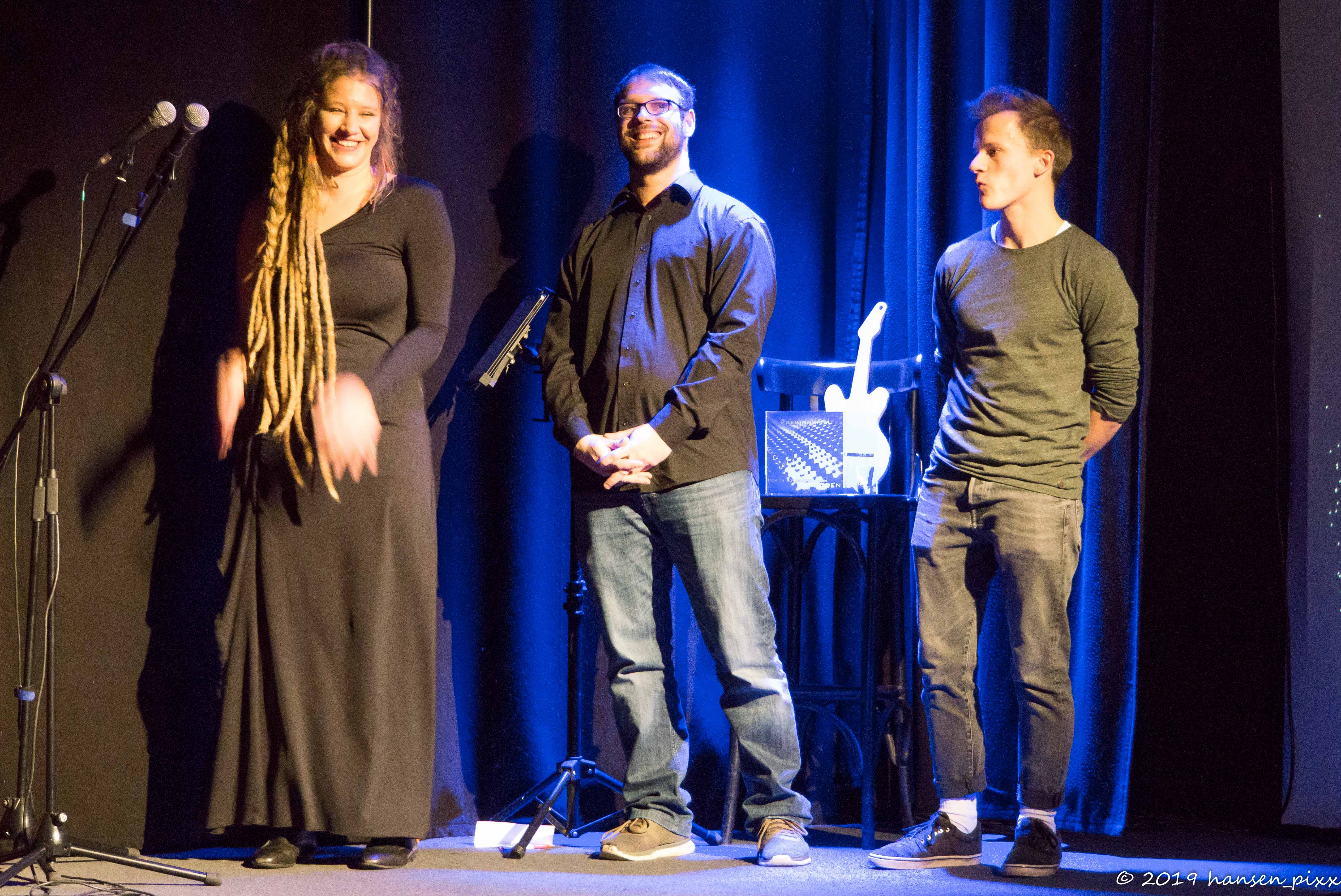 Ein furioses Finale 2019 in der Drehleier nahm seinen Lauf – und so richtig gewinnen wollte am Ende keiner. Die beiden bestplatzierten hatten exakt dieselbe Punktzahl. In einer hauchdünnen Applausometer-Entscheidung landete schlussendlich Filip vor dem Duo Pironjo. Dafür darf er an einem Studiotag in den Amper Studios in Oberschleißheim seine Songs einspielen. Und das Duo Pironjo darf sich über einen saftigen Rabatt ebenfalls in den Amper Studios freuen. Und beide natürlich noch über einen Gutschein von Thomann.